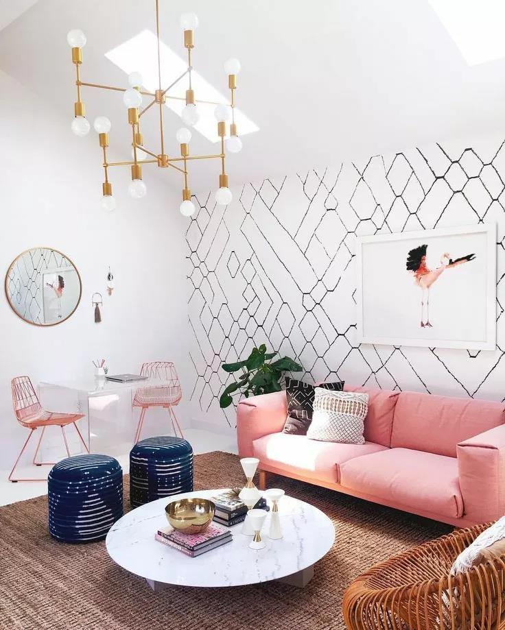 成套的大沙发既占地方,又笨重沉闷。不如选择不同材质,不同颜色的小型沙发搭配。打破传统的摆放方式,可以面对面、可以围合式,让你的客厅和谐、有趣。