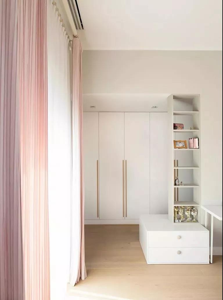 整个空间选择白色为主打色,简约的白色内饰唯美清新。些许的金色点缀,增添别致的质感格调。阳光穿过落地窗溜进主人家,空间更加的明媚纯净。