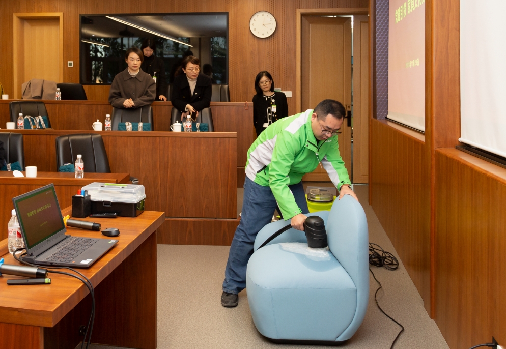此外,圣奥集团员工还现场演示了软体家具的清洁方法,让参与者直观感受到了家具文化的魅力与实用性。