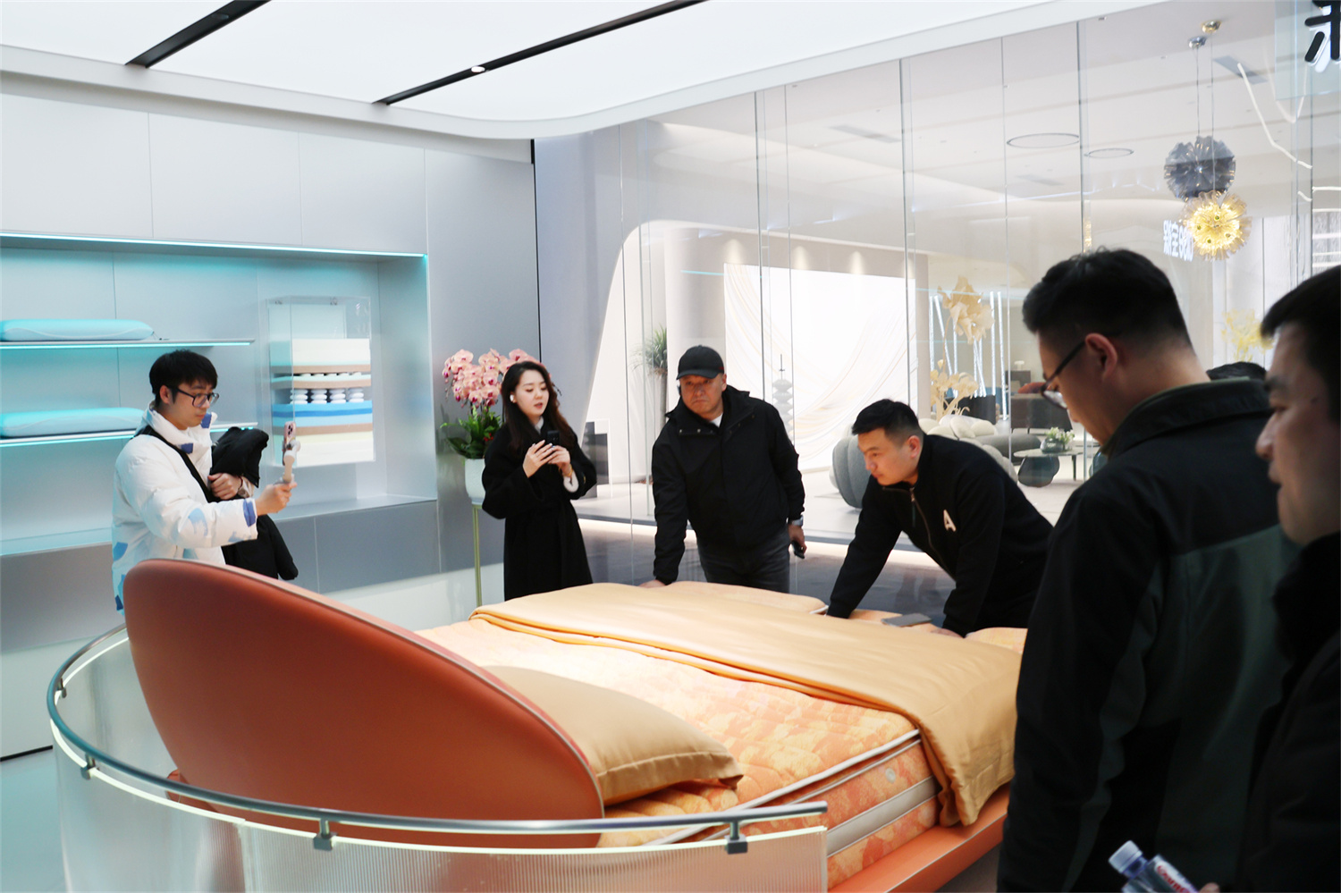 在喜临门实验室,前沿的科研设备与专业的研发团队更是让代表们对喜临门在睡眠科技领域的执着探索肃然起敬。此外,代表们还亲身体验了喜临门最新上市的高端智能床“宝褓”系列产品,沉浸式感受了喜临门带来的全新睡眠体验。