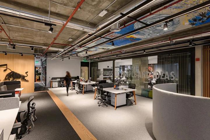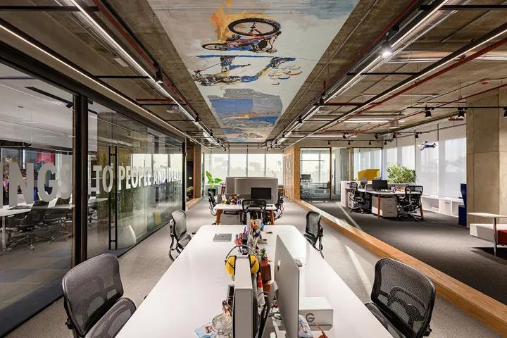 功能饮料品牌红牛Red Bull,在埃及开罗新设了一处办公室。粗犷的混凝土楼板映衬着各式极限运动的涂鸦创作,带来强烈的视觉冲击和满满激情能量。本案由建筑和室内设计公司Eklego Design设计团队打造。